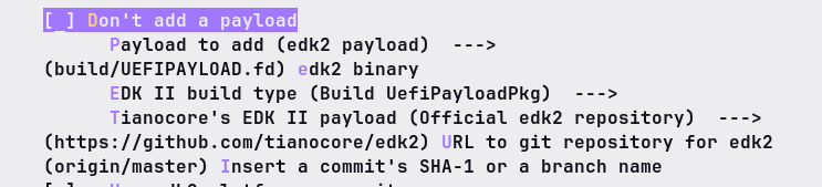 And since we will focus on EDK2, select the edk2 payload: